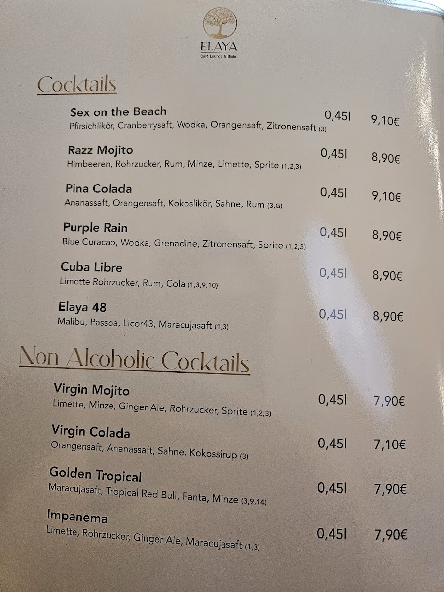 ELAYA Cafe Lounge & Bistro Menu